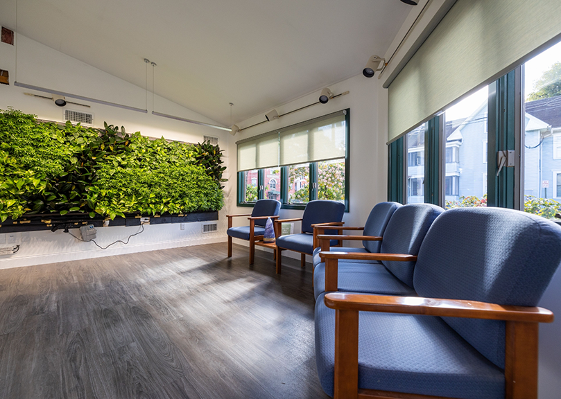 When you step inside our office, you’ll immediately feel comfortable and at ease. Our reception area is particularly homey—you might notice our self-watering living green wall, which helps to clean the air in our office and keep it feeling fresh. You may also see our bubbled water windows that give the office a smooth water sound and help our patients feel relaxed during their visit. You also won’t be able to ignore the smell of freshly brewed coffee when you’re sitting in the reception area. Our espresso machine is always available for you to use, as well as the rest of our beverage station.